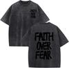 Men's Washed Faith Over Fear Print 100% Cotton Oversized Short Sleeve T-shirt