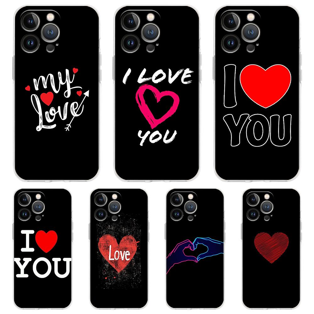 For iPhone 15 16 14 13 12 Mini 11 Pro Max XS X XR SE 7 8 Plus Silicone Clear Cover I Love You Pink Heart Luxury Phone Case