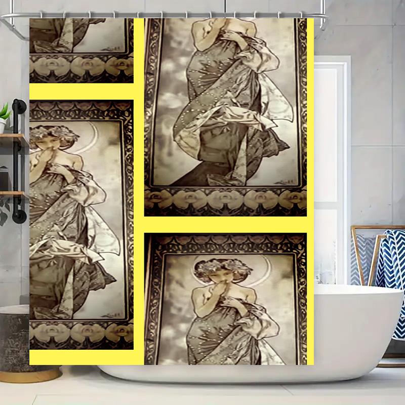 Charming Vintage Woman Bath Shower Curtain: Fashion Artistic Style Printed Waterproof Decorative Home Decoration for Bathroom Si