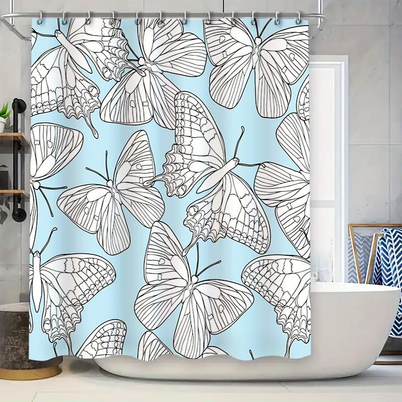 Luxury Printed Shower Curtains with Butterfly Design for Bathroom Decor Blue Floral Print Shower Curtain Set Size 180x245cm Free