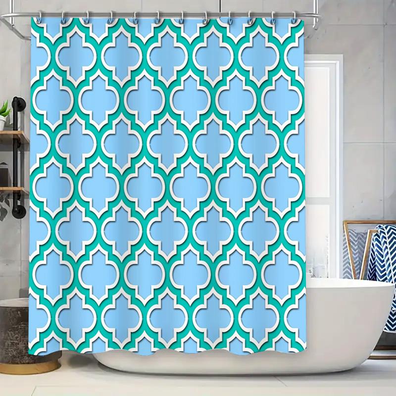 Blue Lattice Bliss: Modern Geometric Shower Curtain for a Vibrant and Stylish Bathroom Décor