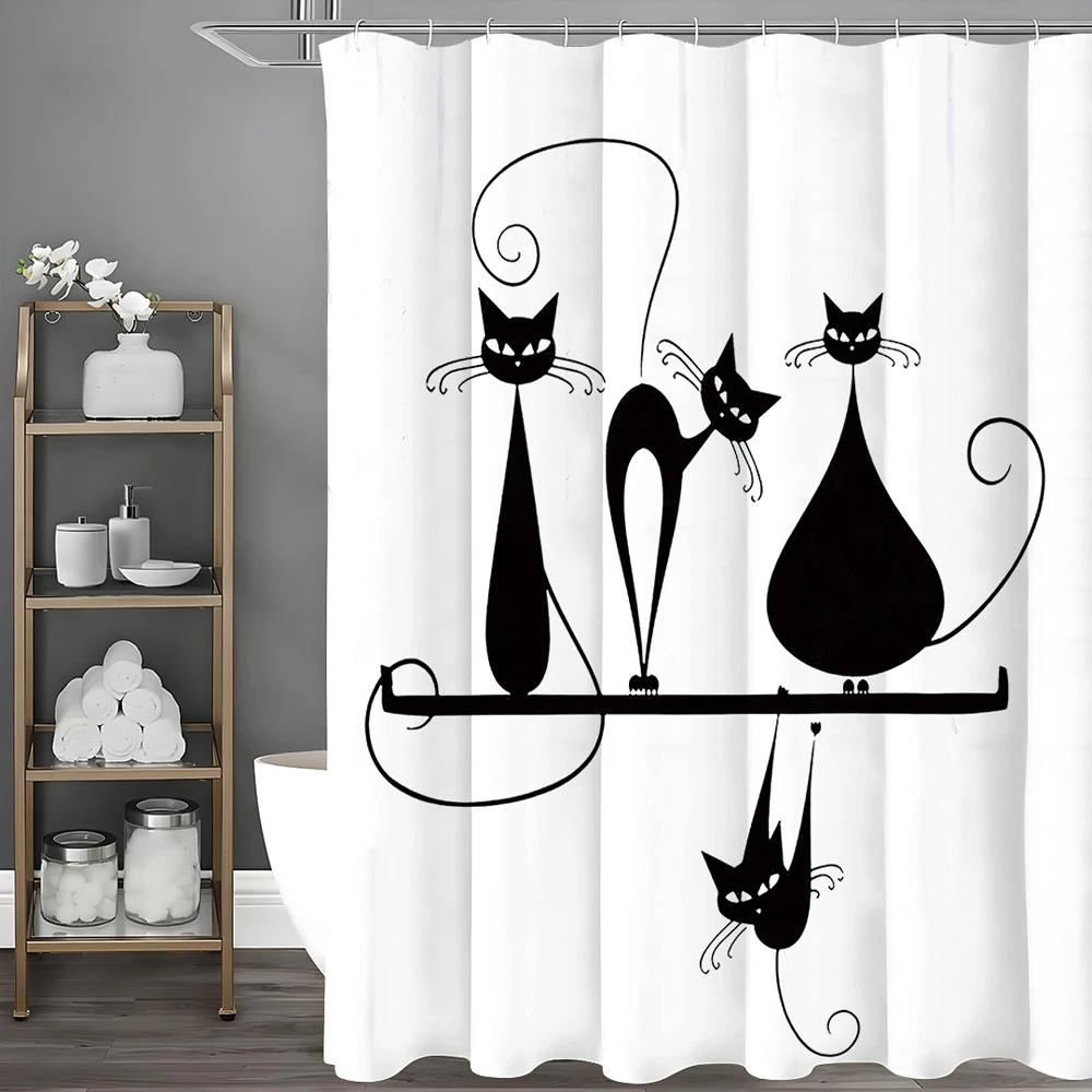 Black Cartoon Cat Shower Curtain, Bathroom Decorative Shower Curtain, Waterproof Shower Curtain with Hooks