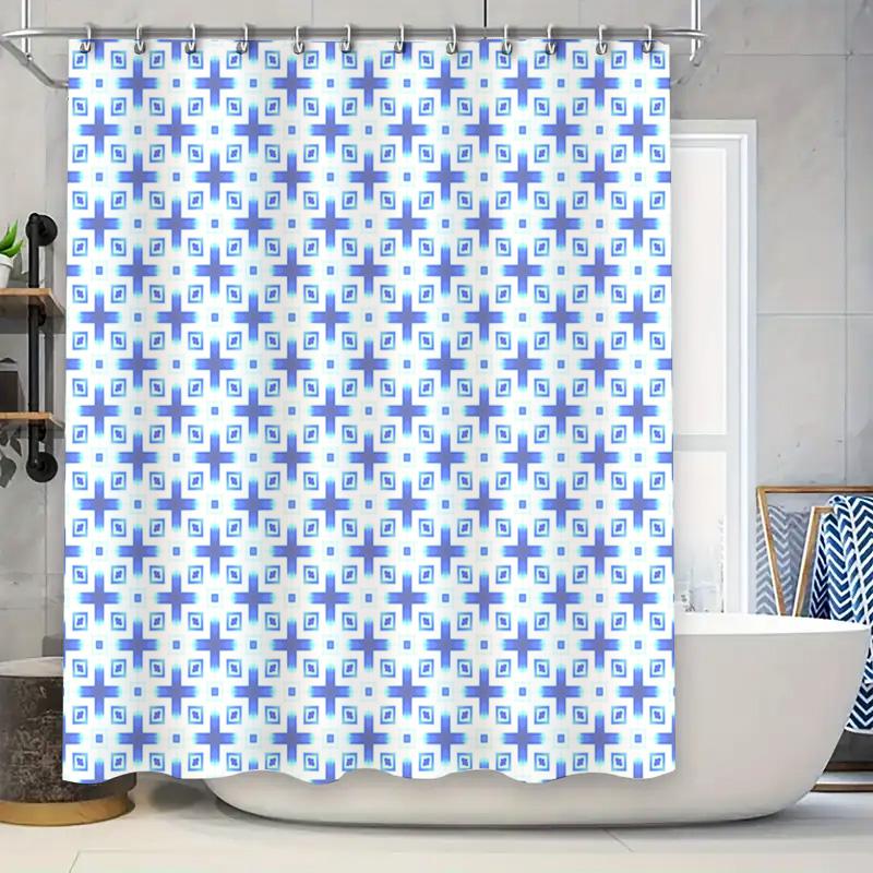 Blue White Bath Curtain with Geometric Design for Home Decor Quick Drying Fabric Shower Curtains In Blue Tones (60x72)