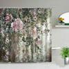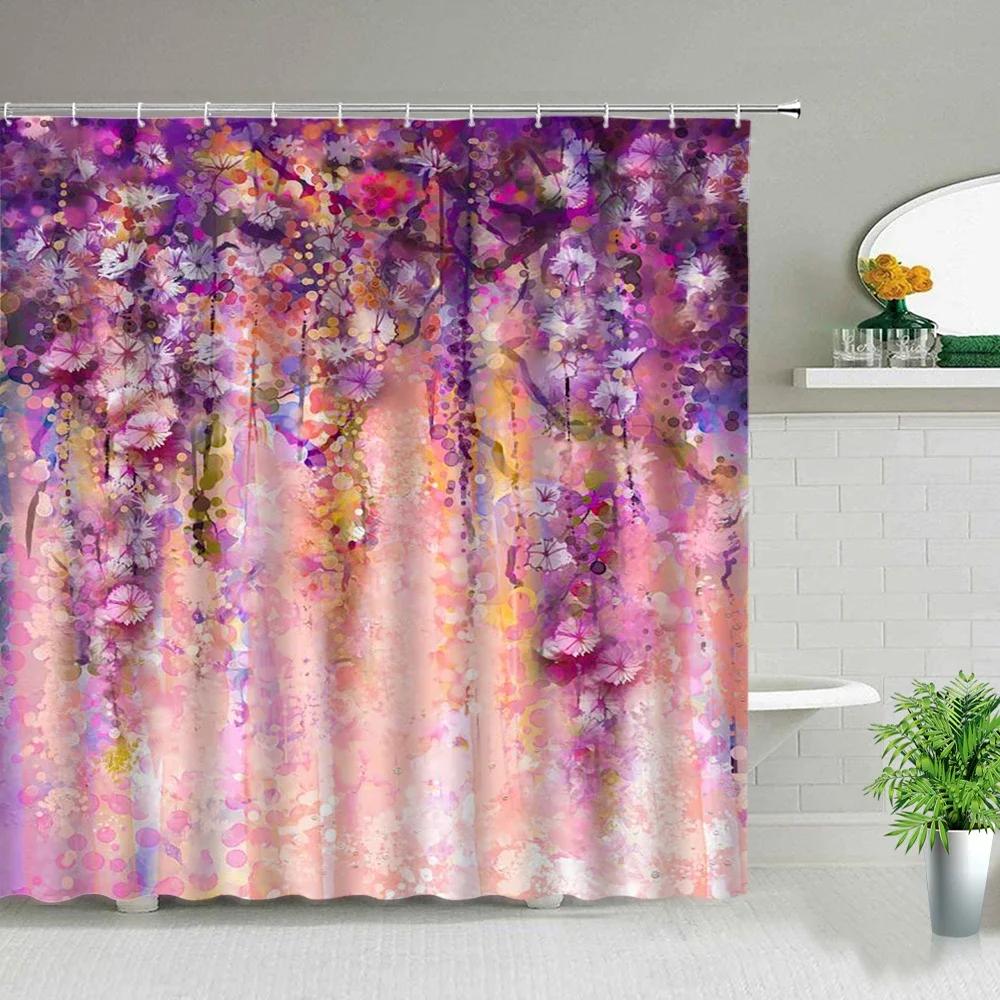 Flowers Plant Shower Curtains Beautiful Flower Purple Bathroom Decor Bathroom Screen Polyester Frabic Waterproof Cloth Curtains