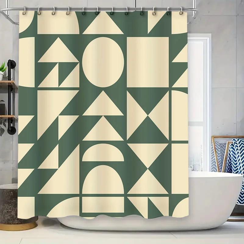 Modern Geometric Shapes Rectangular Shower Curtain for Bathroom Decor Green Cream Abstract Design In Various Sizes
