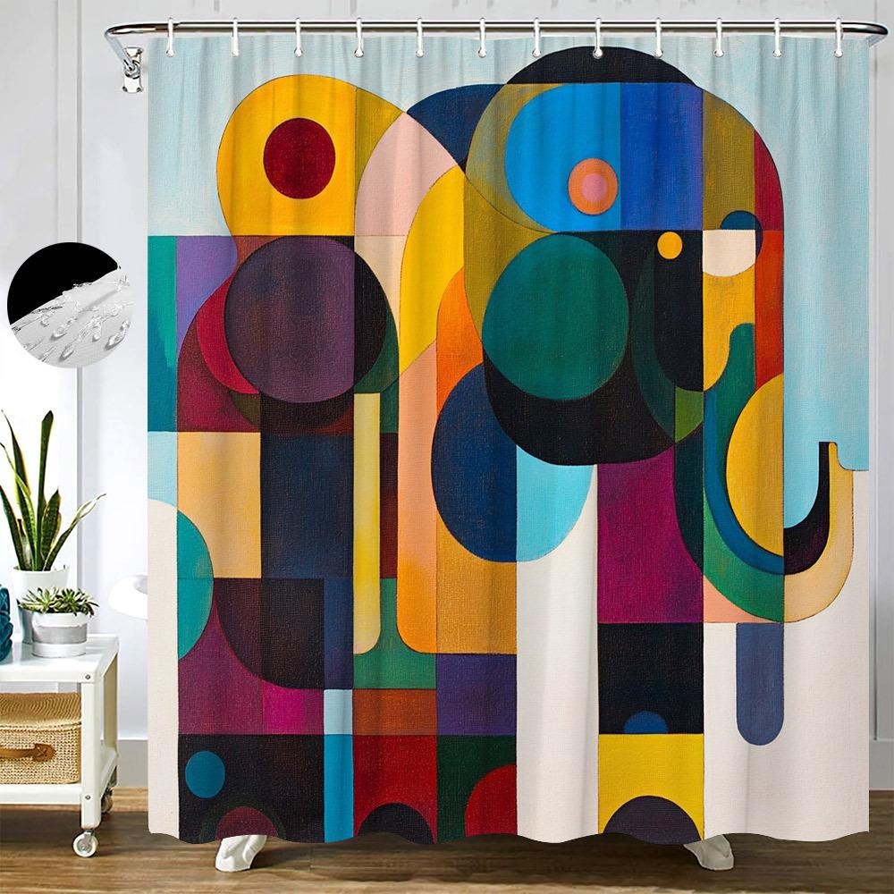 Vibrant Abstract Geometric Waterproof Mildew-Resistant Shower Curtain - Modern Design for a Bold Bathroom Décor Experience