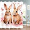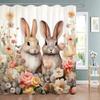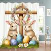 Easter Shower Curtain Happy with Bunny Eggs Vintage Style Bathroom Decoration