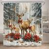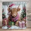 Christmas Highland Cow Shower Curtain Winter Cedar Snowy Xmas Gifts Farm Animal New Year Home Bathroom Curtains Decor With Hooks
