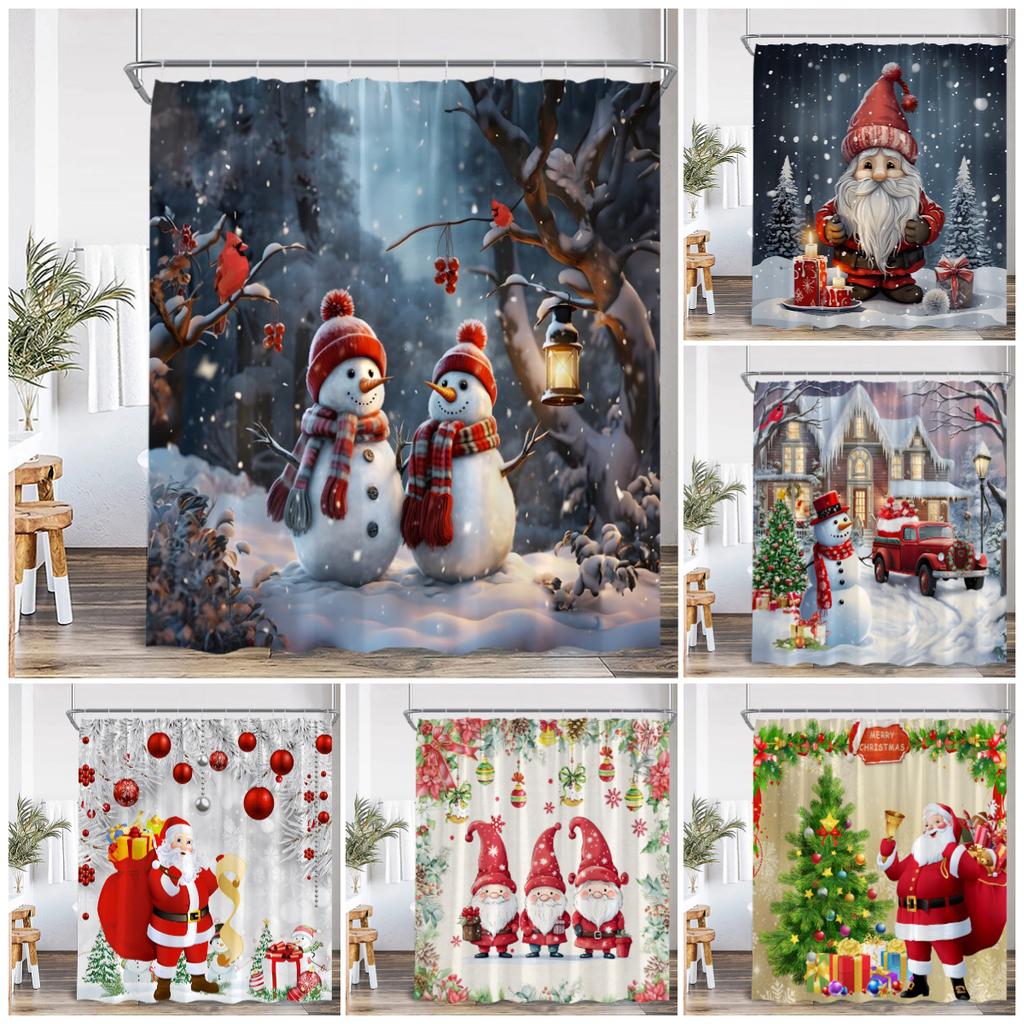 Cute Snowman Christmas Shower Curtains Santa Claus Xmas Tree Truck Winter Forest Scenery Home Bathroom Decor Bath Curtain Set