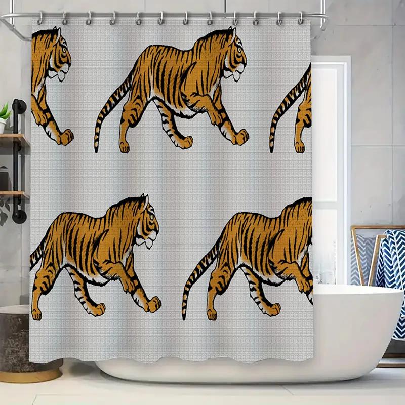 Animal Tiger Print Shower Curtain Fabric Waterproof Bathroom Decor for Home Decoration Yellow White Stripes Pattern Size: 72x84