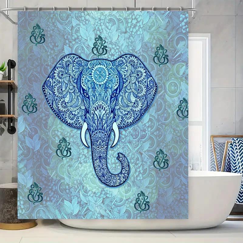 Luxury Blue Mandala Elephant Shower Curtain Decorative Bath Mat Waterproof Fabric for Bathroom Accessories Size: W69 X L72 In Ho