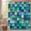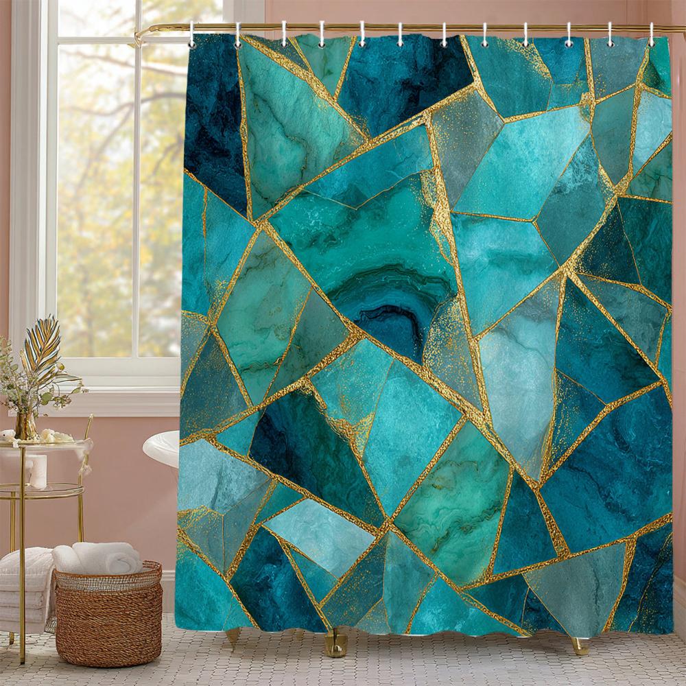 Modern Creative Geometric Pattern Blue Shower Curtain, Bathroom Decorative Shower Curtain, Waterproof Shower Curtain with Hooks