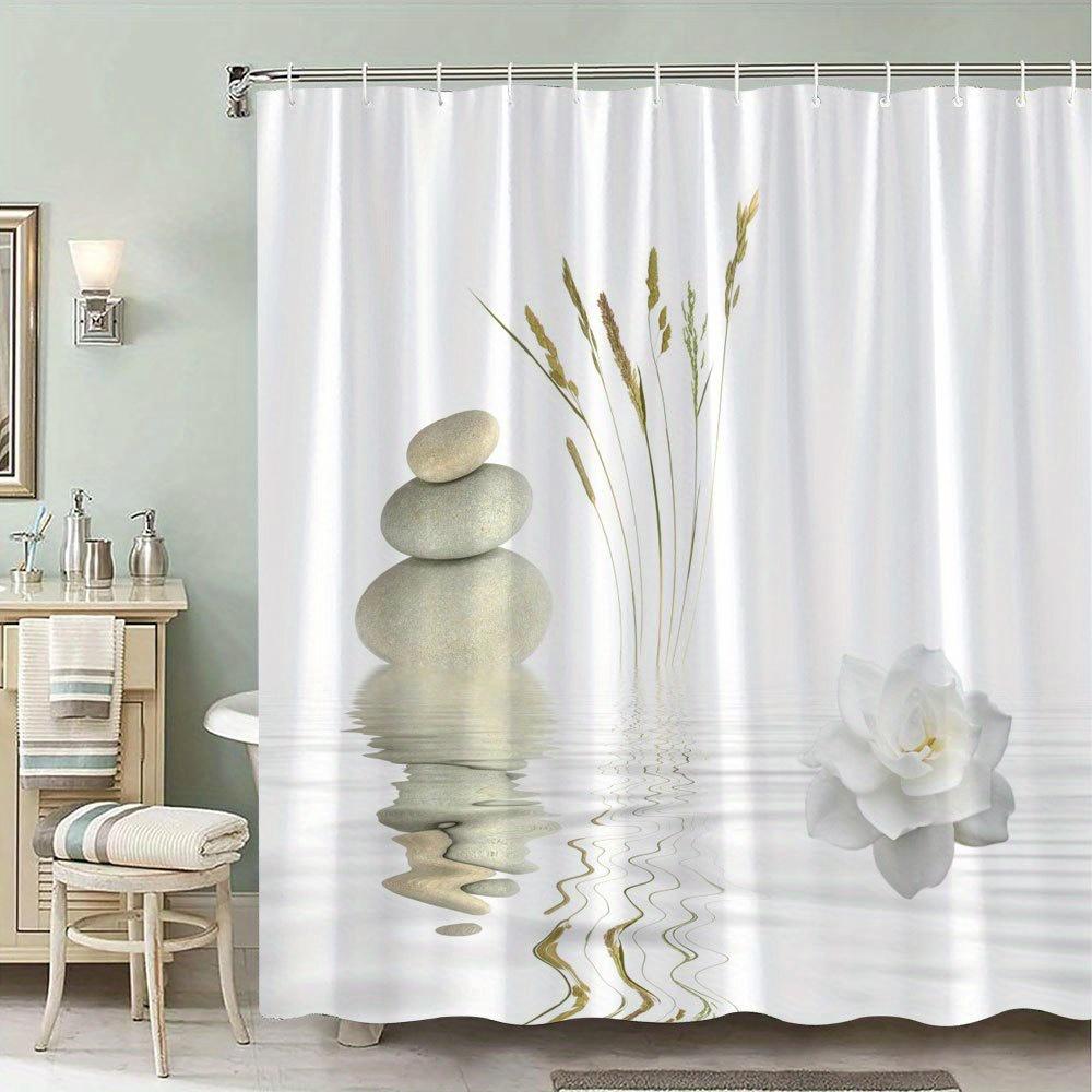Minimalist Shower Curtain - Stone & Wheat, White Peony Reflection, Polyester, 70In, 12 Hooks, Machine Washable