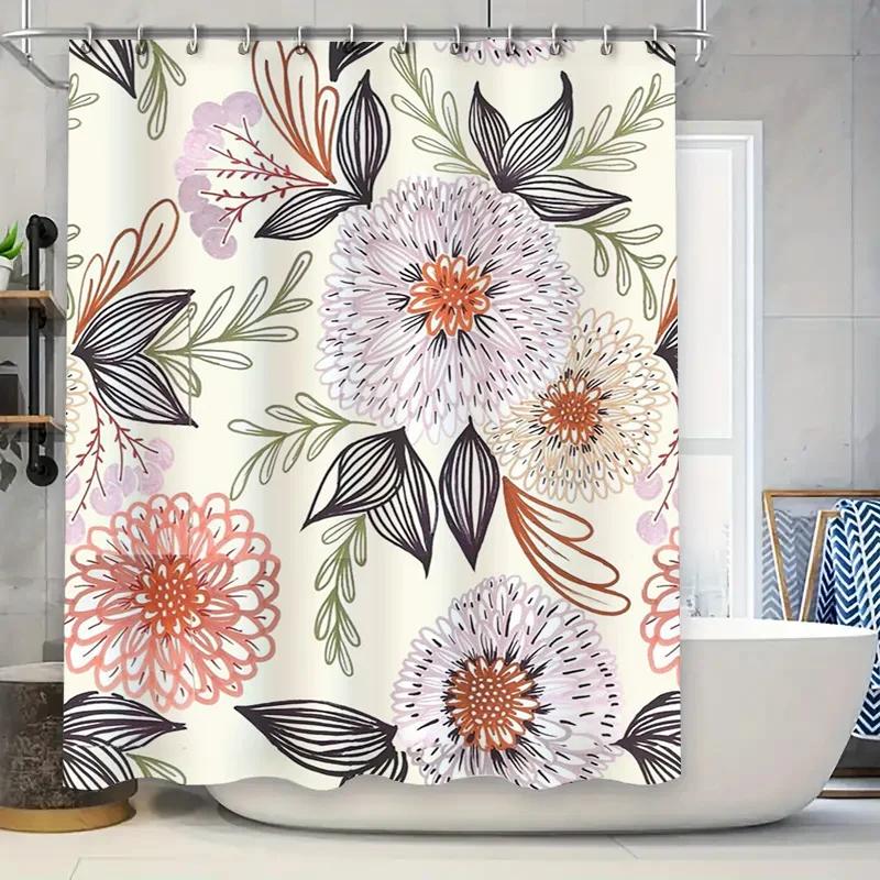 Chic Floral Bathroom Shower Curtain Modern Design for Home Decor White Black Pink Flower Pattern Waterproof Fabric Custom Size a