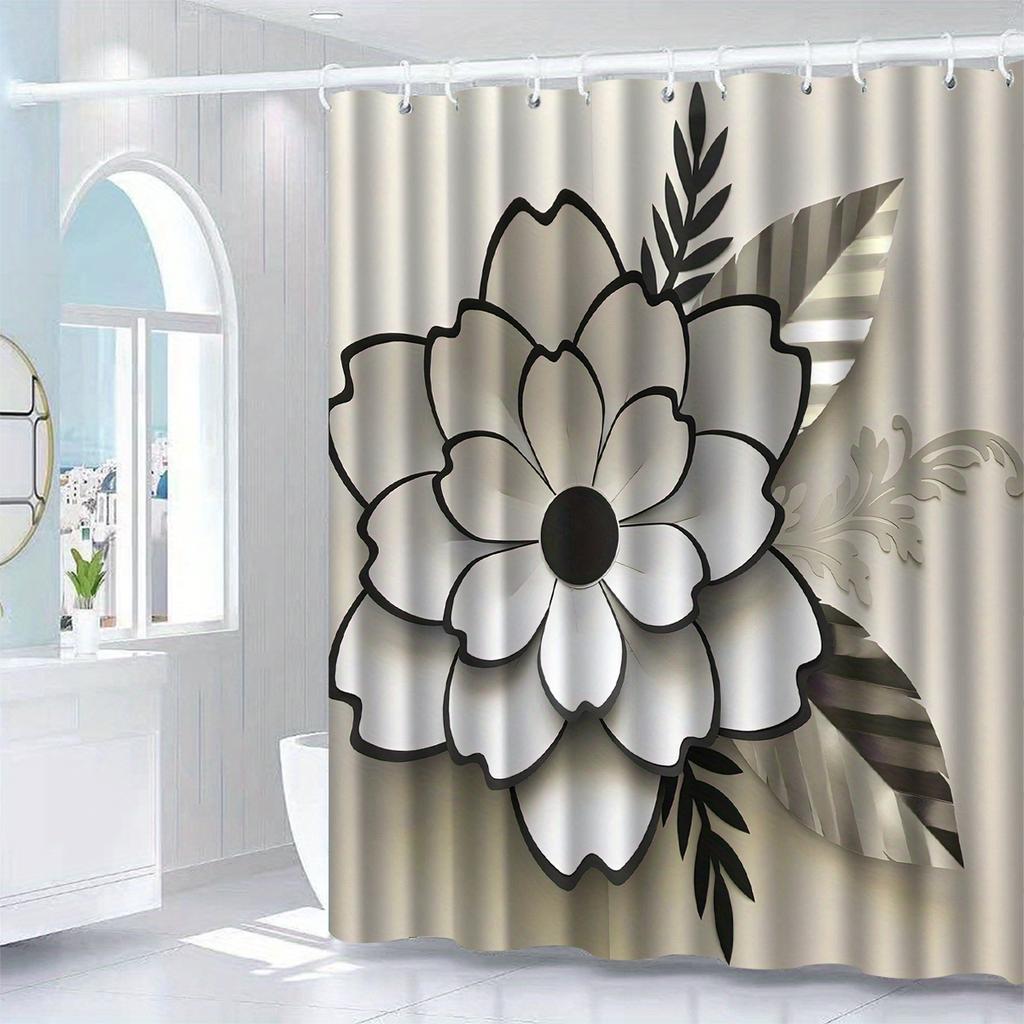 Elegant White Floral Shower Curtain, Anti-Fog, Artistic Polyester Design, Machine Washable,Modern Bathroom Upgrade