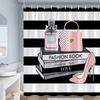 Fashion Girl Pattern Shower Curtain Black White Stripe Bathroom Decor Accessories American Style Bath Curtains Waterproof Cloth