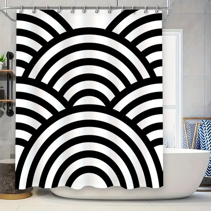 Modern Black White Stripes Shower Curtain for Bathroom Decor High Quality Waterproof Fabric with Ring Holder Set (White)