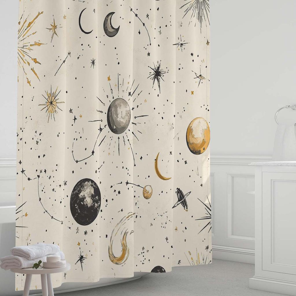 1pc Minimalist Star & Moon Shower Curtain - Waterproof Polyester, 12 Hooks, Machine Washable, Includes Window Curtain