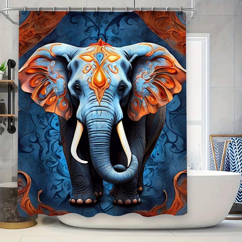 Blue Floral Elephant Shower Curtain Decorative Blue Fabric Waterproof Bath Mat Set for Home Living Room Decoration