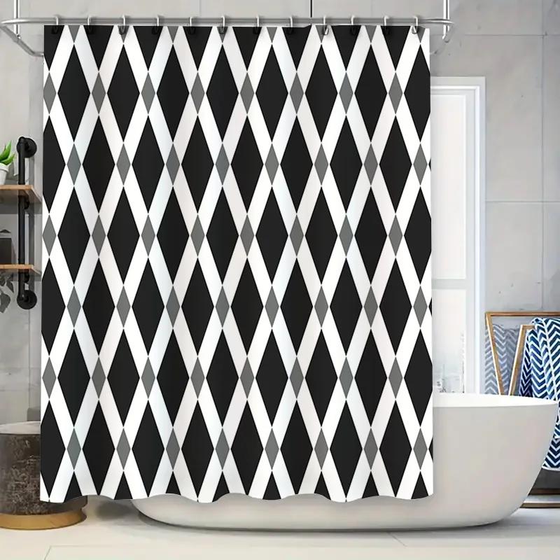 Diamond Check Shower Curtain – Black & White Pattern for Modern Bathroom Decoration