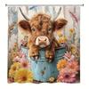 Funny Highland Cow Shower Curtain, Cute Calf with Sunflower, Graffiti Wood Board Art, Fabric Bath Decor,12 Plastic Hooks