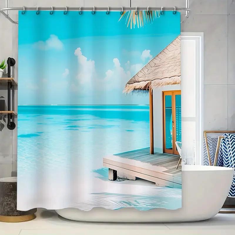 Beach Hut Shower Curtain Tropical Paradise Print Waterproof Bathroom Decor for Home and Hotel for Stylish Home Upgrade