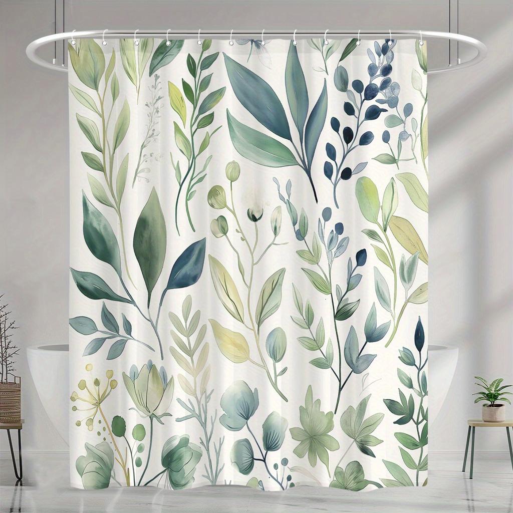 1pc Plants Pattern Shower Curtain, Waterproof Shower Curtain With Hooks, Bathroom Accessories, Home Decor