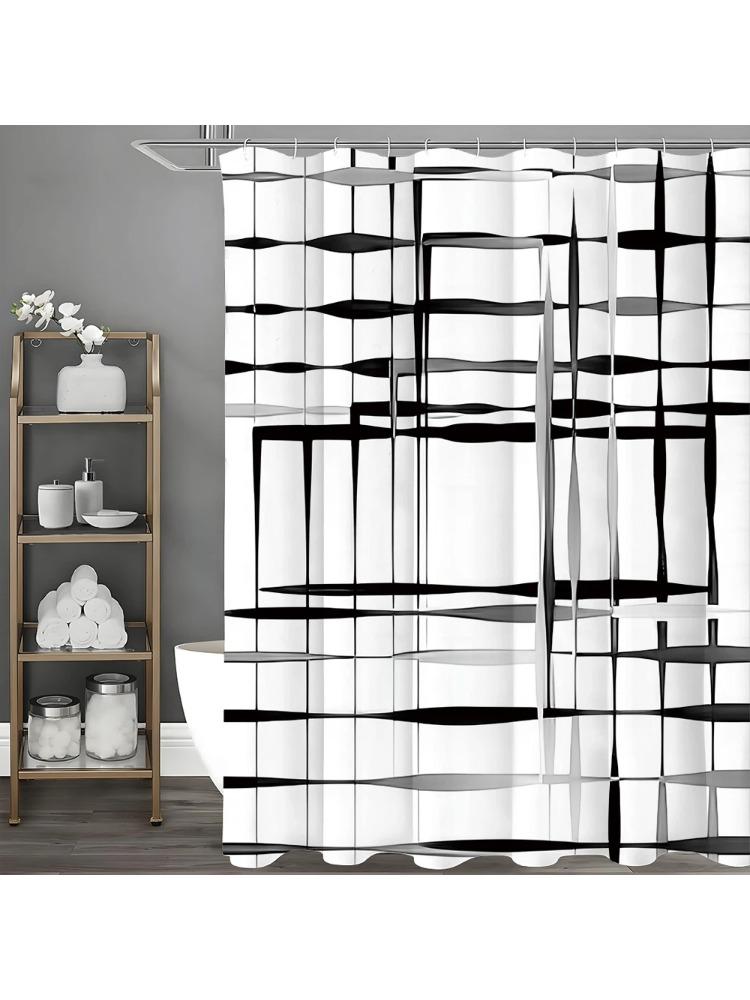Modern Geometric Line Abstract Minimalist Shower Curtain, Bathroom Decorative Shower Curtain, Waterproof Shower Curtain with Hoo