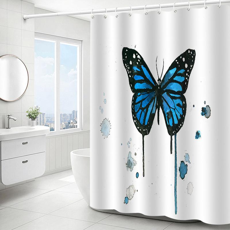 Blue Butterfly Shower Curtain, High-end Elegant and Anti-fog Bathroom Curtain, Bathroom Decoration Pattern