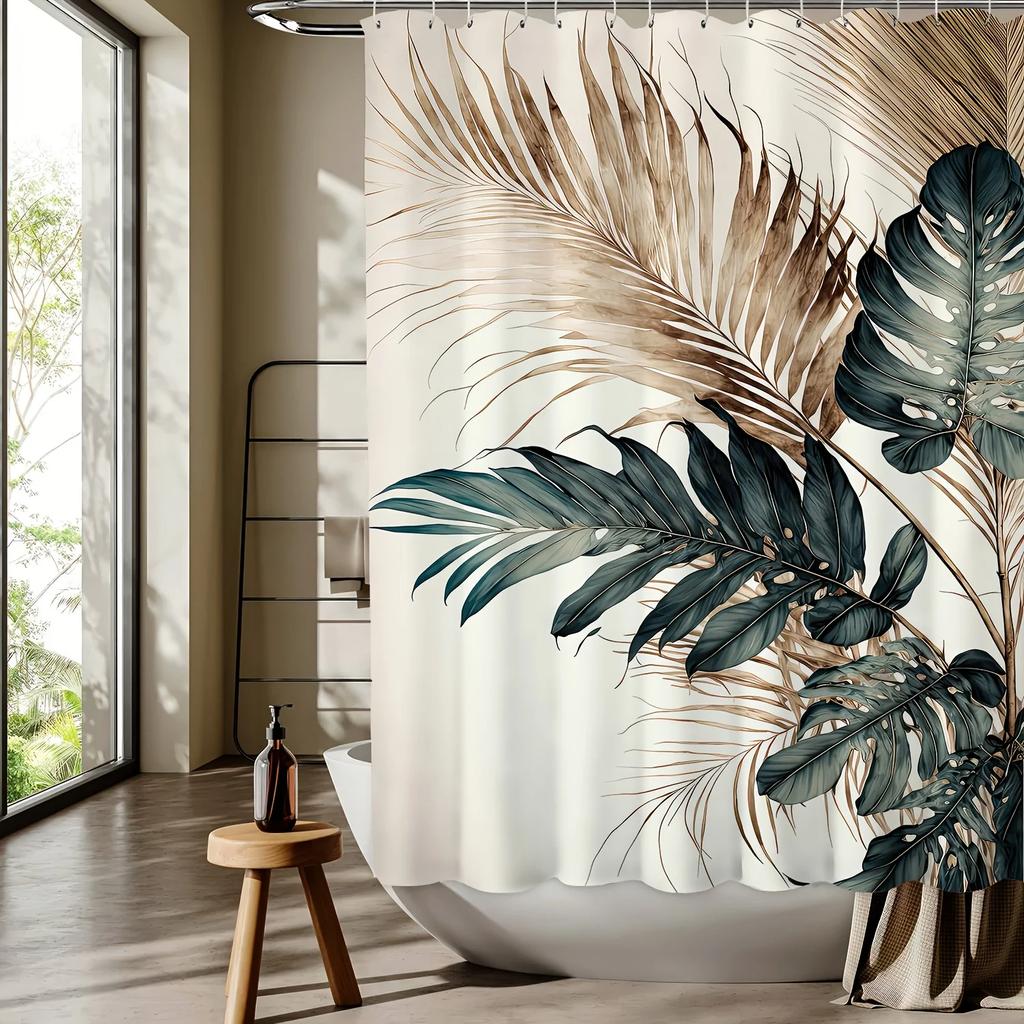 Elegant Watercolor Tropical Leaves Waterproof Shower Curtain – Perfect for Adding a Luxurious and Nature-Inspired Touch