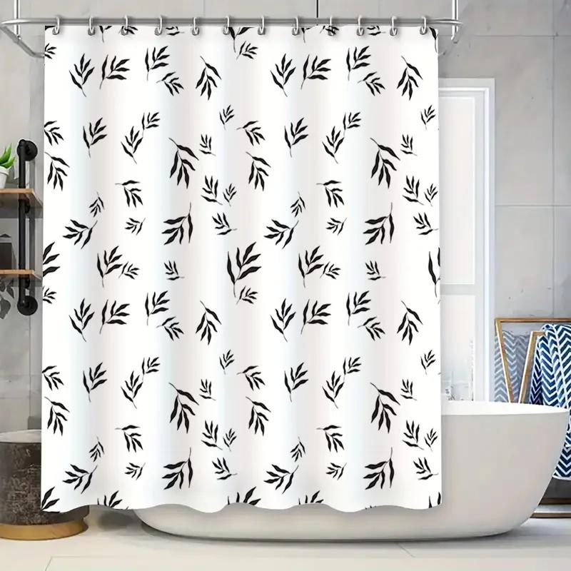 Decorative Black White Leaf Shower Curtain Set for Bathroom Decor Waterproof Fabric with Hooks (White)