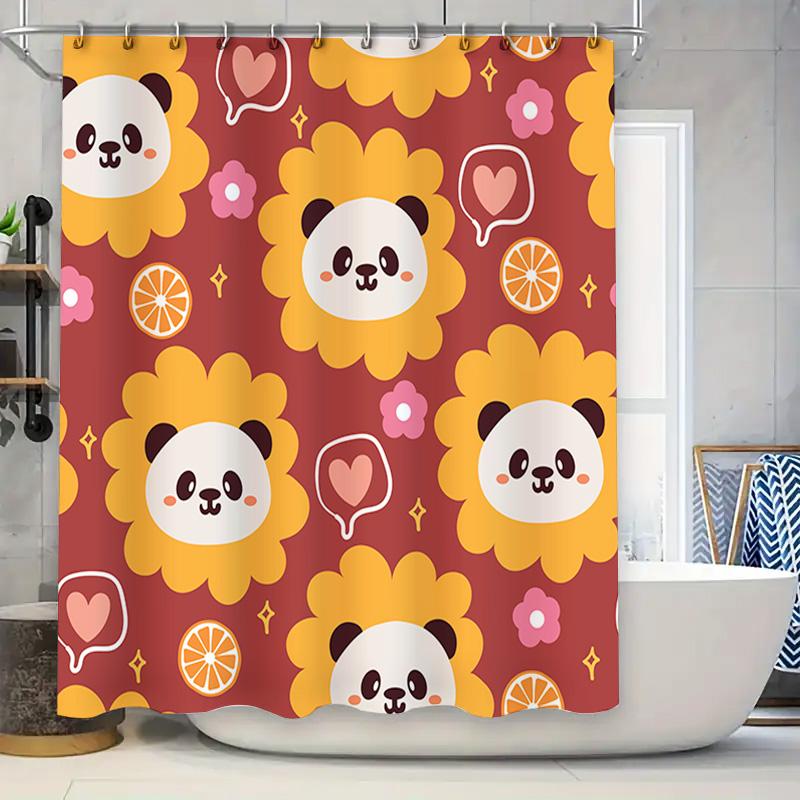 Modern Bathroom Shower Curtain Decor with Cartoon Animals Bright Flowers Fruit Design for Kids Bathrooms