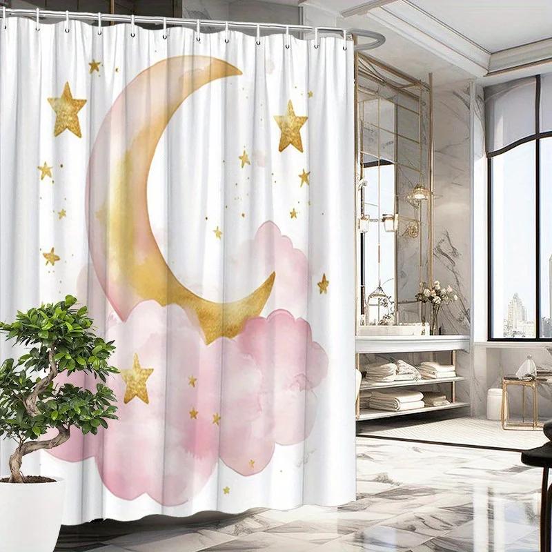 Dreamy Moon and Stars Shower Curtain - Water-Resistant, Easy To Clean, Adds a Magical and Serene Touch To Your Bathroom Decor