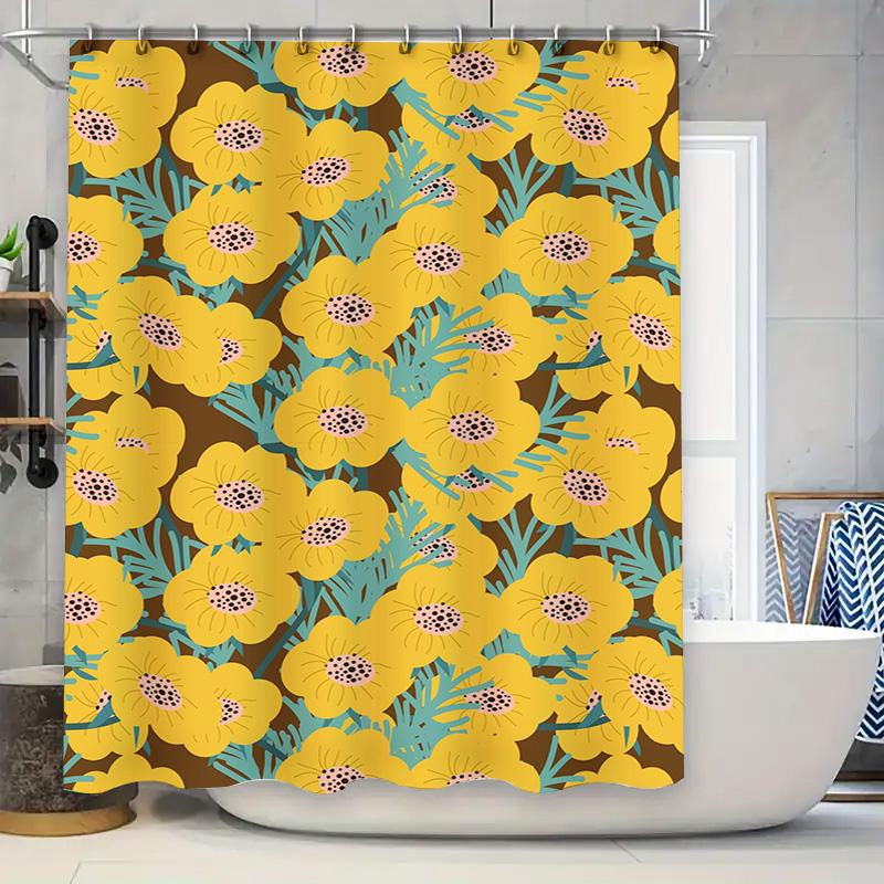 Modern Floral Shower Curtain Vivid Yellow Blue Design for Bathroom Decor Polyester Fabric with Hooks Included (180x240cm)
