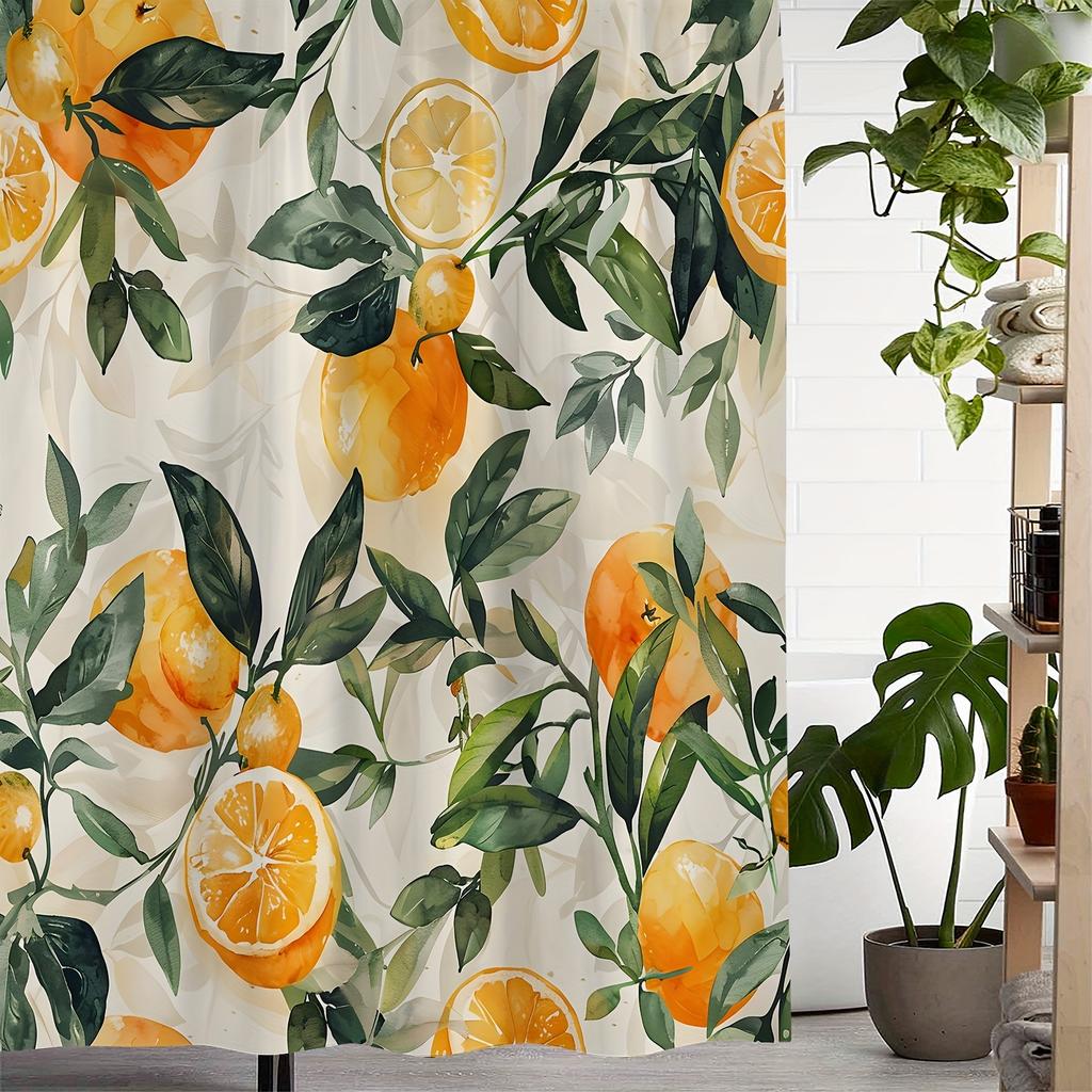 A Citrus Delight Shower Curtain: Brighten Up Your Bathroom with This Vibrant Design Featuring Lush Orange Trees, Juicy Oranges,
