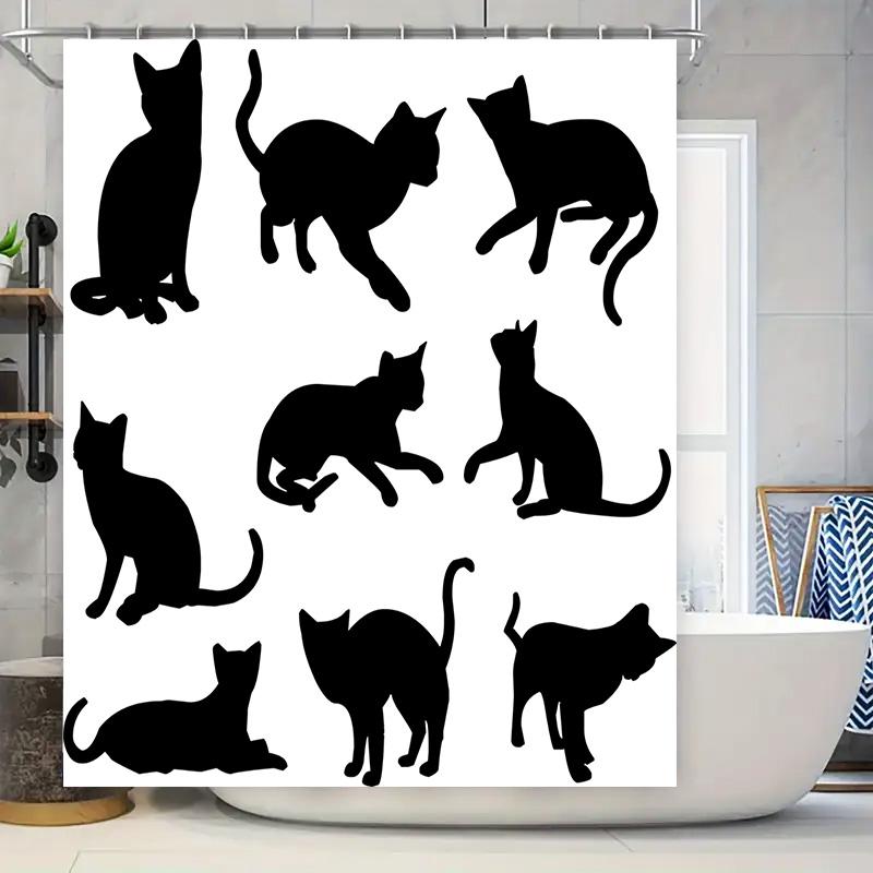 Animal Print Shower Curtains Set Polyester Waterproof Black Cats Silhouette Bathroom Decor Customizable Lengths