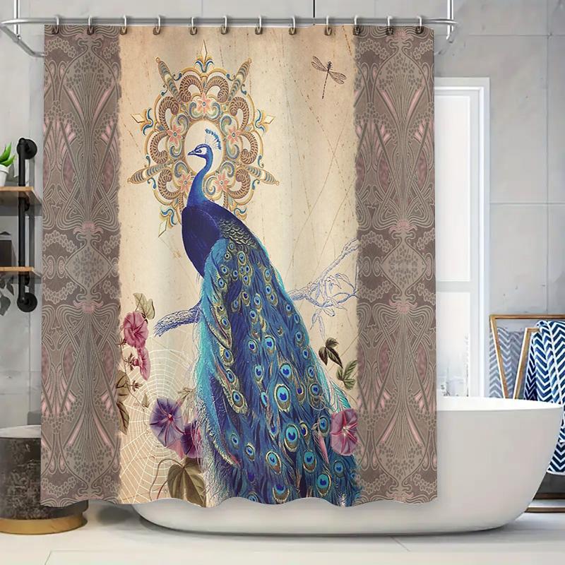 Peacock Shower Curtain Floral Birds Pattern Bathroom Decor Waterproof Fabric Vintage Nature Blue Teal Home Textile Room Divider