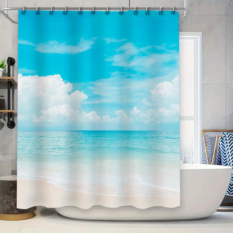 Beach Sky Shower Curtain Blue White Waterproof Printing Decorative Bath Room Window Water Proof Bathroom Decorations Indoor Home
