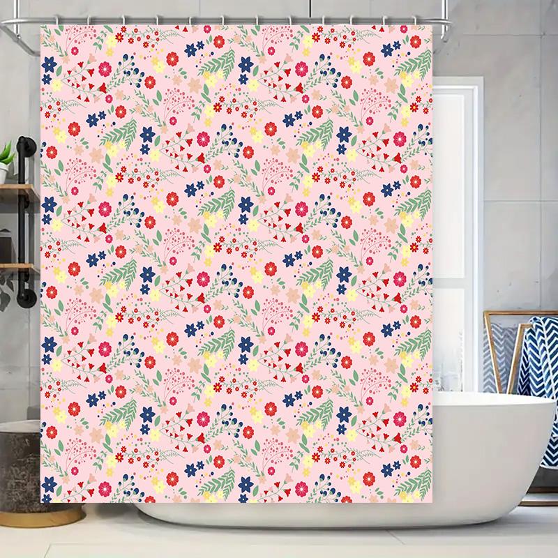 Colorful Floral Print Shower Curtain Pink Blue Flower Decorative Bathroom Accessory for Home Improvement Waterproof Fabric Shamp