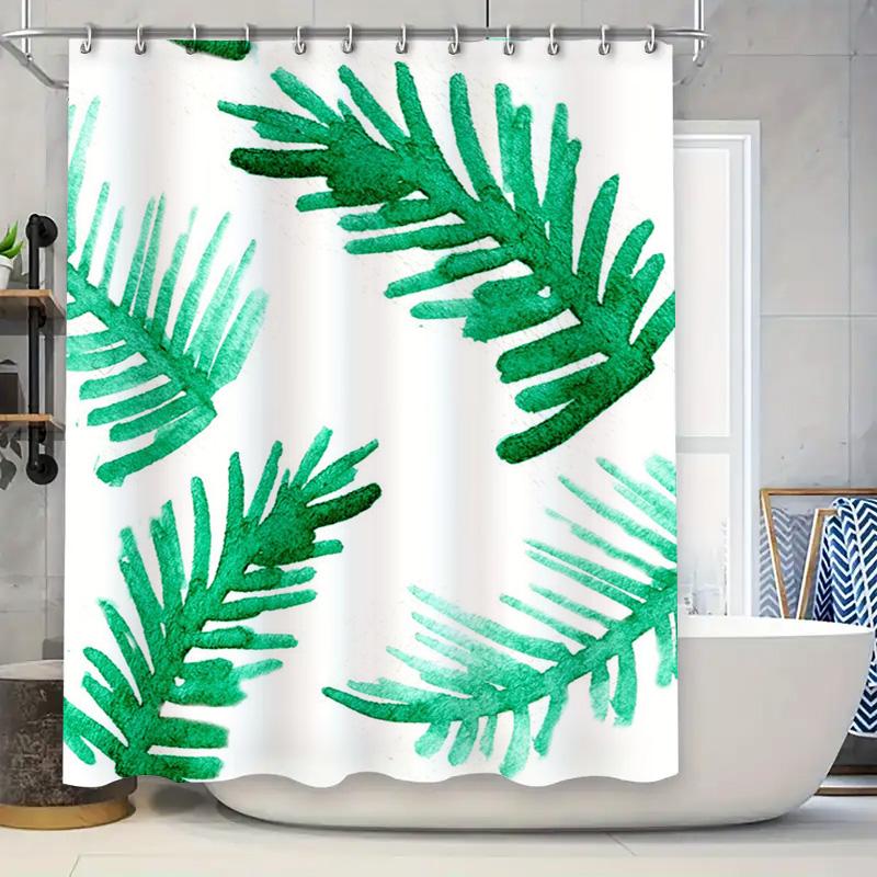Stylish Green Palm Leaf Shower Curtain Waterproof Bathroom Decor White Polyester Fabric Watercolor Design for Home Bathrooms Spa