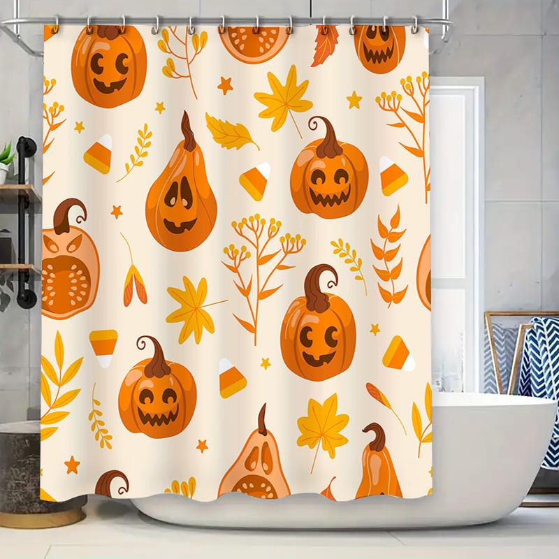 Pumpkin Shower Curtain Halloween Decorative Fabric Waterproof Bath Liner Decoration for Home Bathroom Accessories