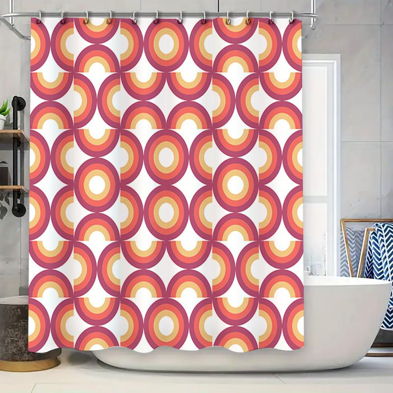 Vintage Retro Bathroom Shower Curtain with Circle Pattern Orange Pink Yellow Red White Polyester Fabric Decorative Home Accessor