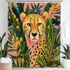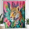 Tropical Plants, Flowers and Pink Leopards Print Waterproof Shower Curtain Hanging Curtain 12 Hooks Decoration Machine Washable