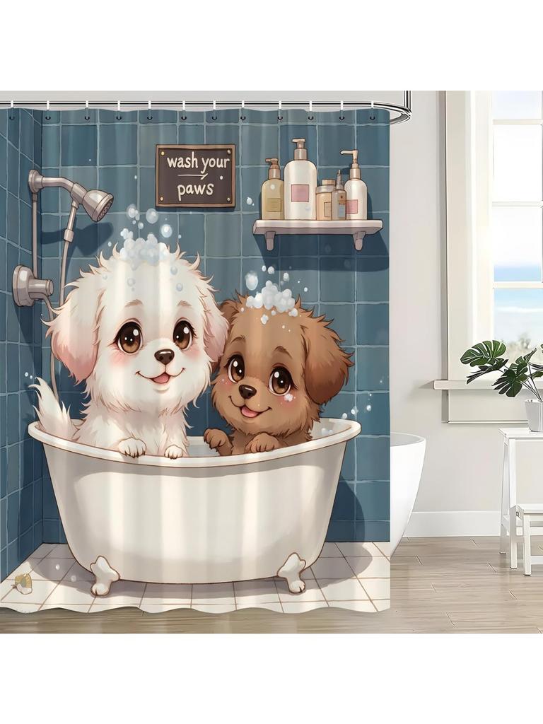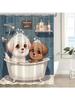 Funny Dog Shower Curtain Bathing In Bathtub Bubbles Cute Puppy Pets Rustic Animals Cartoon Polyester Fabric Bath Curtain 90x180