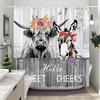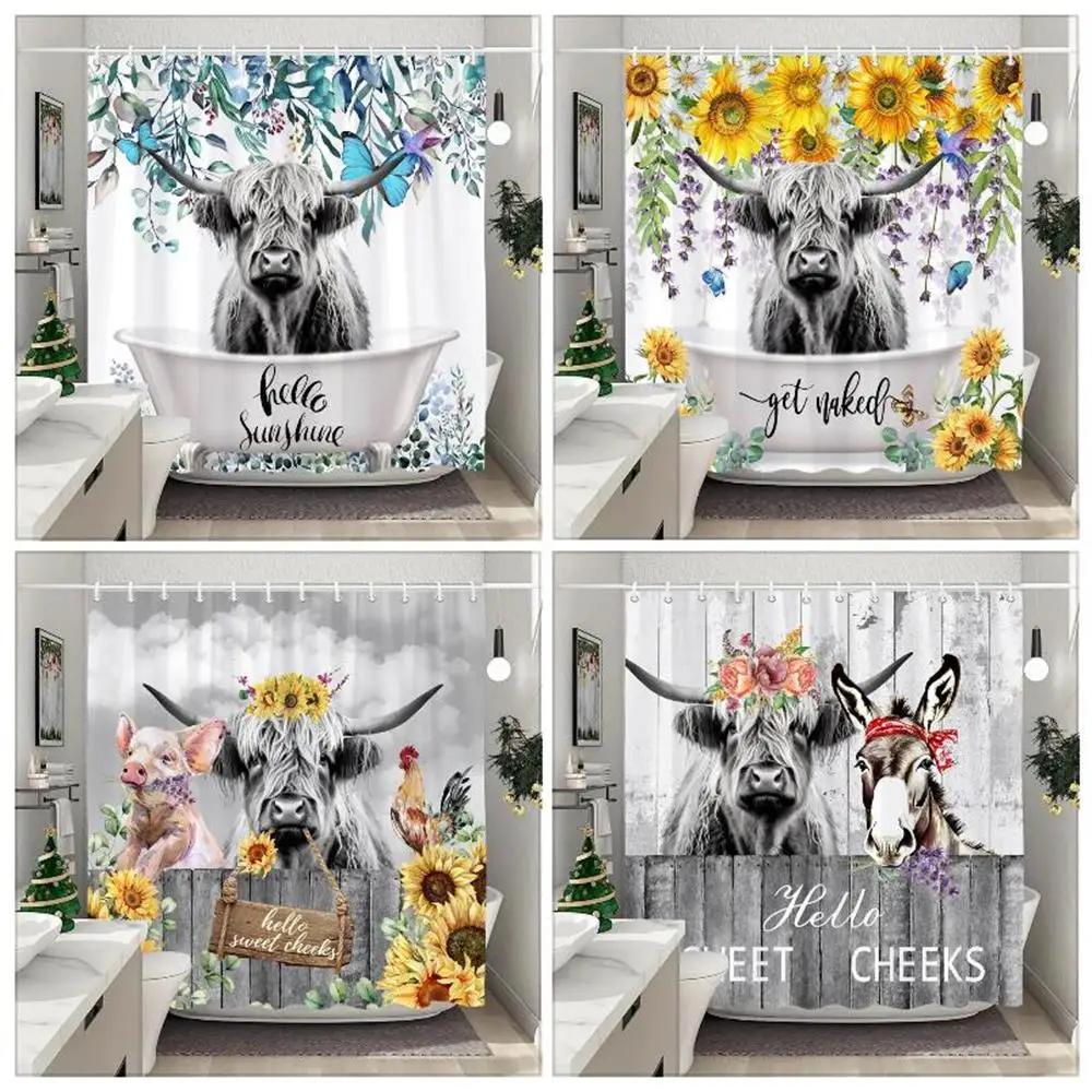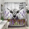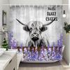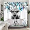 Funny Highland Cow In Bathtub Shower Curtain Green Plants Eucalyptus Leaves Sunflower Lavender Shower Curtains Bathroom Decor