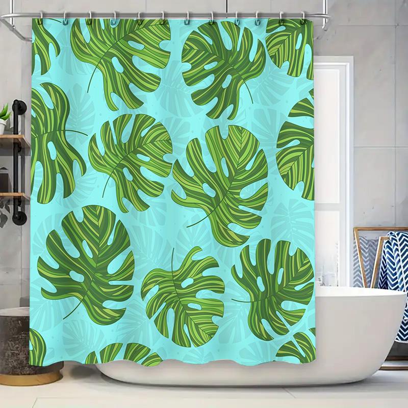 Green Leaf Shower Curtain Waterproof Bath Decor Blue Backdrop Modern Printing Bathroom Accessories Home Decoration