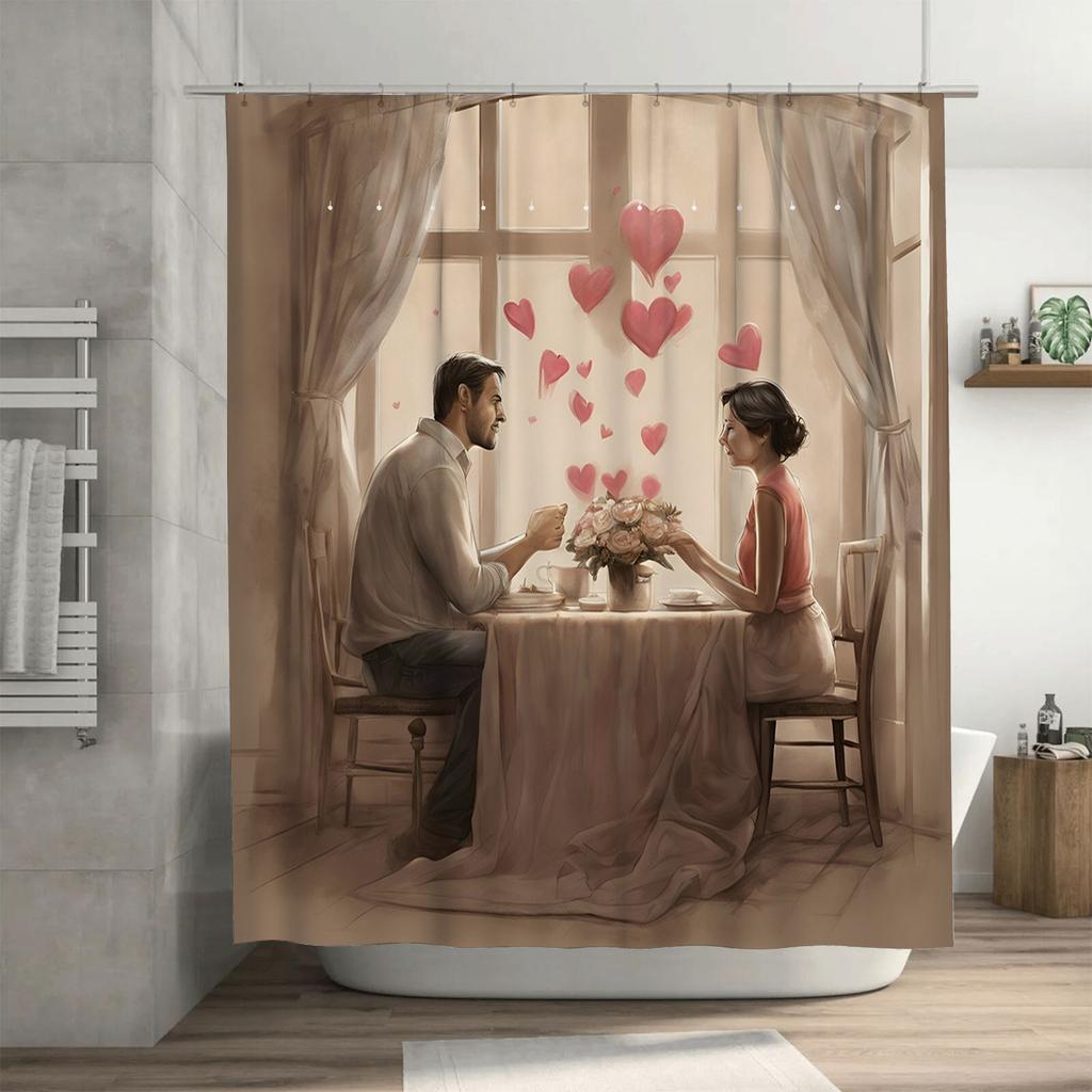 Romantic Couple Waterproof Shower Curtain for Bathroom, Warm Home Decoration, Ideal Gift for Valentine's Day