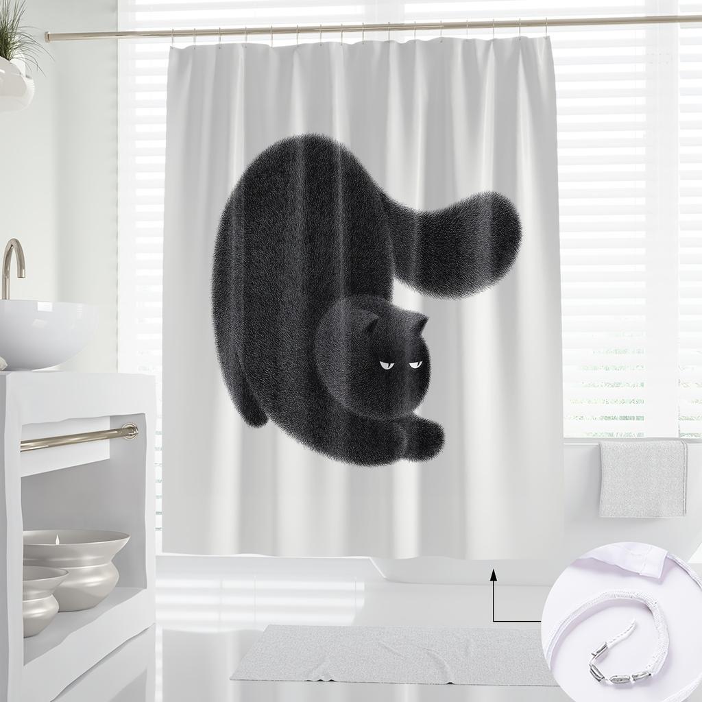 1pc Nordic Modern Minimalist Digital Art Cute Black Cat Shower Curtain - Polyester Bathroom Decor with Hooks, Machine Washable