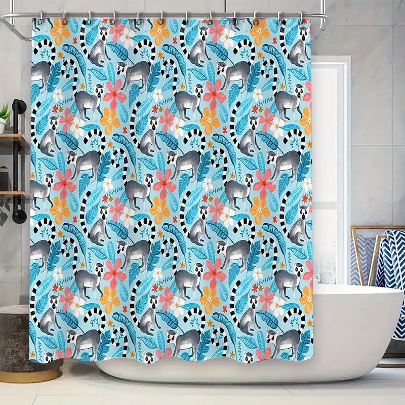 Unframed Lemur Shower Curtain Tropical Rainforest Animal Pattern Bathroom Decor Nature Wildlife Shower Liner Waterproof Home Tex