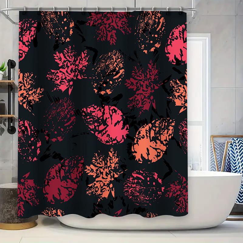 Black and Pink Floral Shower Curtain with a Waterproof PVC Coating for Bathroom Decor In Black, Red, Orange Color Pattern AliExp
